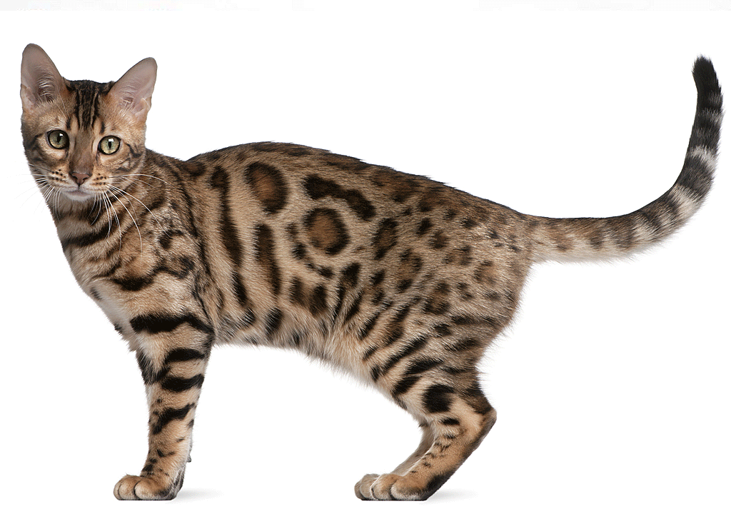 بنگال ها، بسیار سریع و باوقار بوده و دارای بدنی عضلانی و قوی هستند. این گربه ها سری پهن و گوش های گرد و کوچکی دارند. چشم هایی بزرگ و بیضی شکل داشته که تقریبا گرد می باشد. چالاک و باوقار، با بدن عضلانی قوی است .سر پهن و گوش های کوچک و گرد دارد. چشم درشت و بیضی شکل تقریبا گرد است.