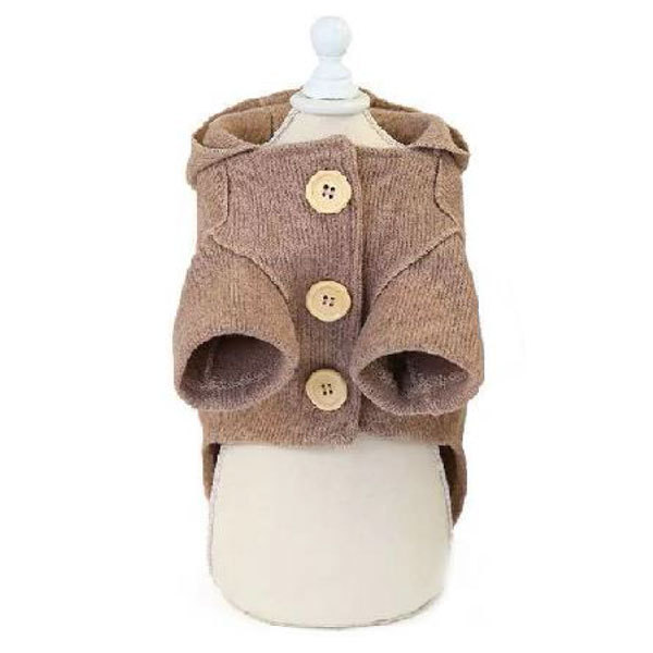 بافت کلاه دار سگ دو دکمه با تم قهوه ای – Tow Button