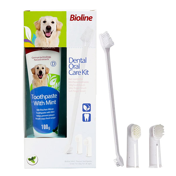 ست بیولاین حاوی مسواک و خمیر دندان ویژه سگ با طعم نعناع به خوبی می تواند آلودگی ها و جرم ها را از بین ببرد و نفس حیوان را تازه کند.