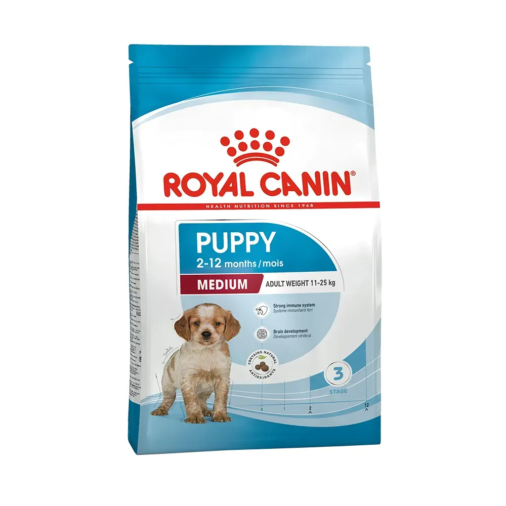 غذای مدیوم پاپی یا medium puppy برند رویال کنین برای توله سگ های نژاد متوسط که وزن بالغ آن ها بین 11 تا 25 کیلوگرم باشد طراحی شده است.