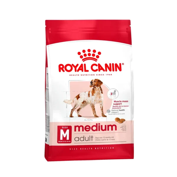 غذای مدیوم ادالت یا Medium Adult برند رویال کنین برای سگ های بالغ نژاد متوسط با سن 1 تا 7 سال و وزن بین 11 تا 25 کیلوگرم تولید شده است.