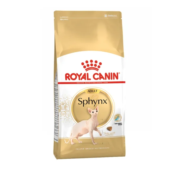 غذای اسفینکس با توجه نیازهای غذایی خاص این نژاد فرمول سازی شده است. برای گربه های بالای 12 ماه می توان از این محصول استفاده کرد. گربه های نژاد Sphynx به دلیل کمبود پوشش مویی، با مشکل تنظیم دمای بدن مواجه هستند. به همین دلیل فرمولاسیون غذا برای جبران کمبود مو، متابولیسم فعالی دارد که توسط آن گربه ها می توانند دمای بدن خود را تنظیم کنند. این محصول حاوی میزان کالری بالا (23% چربی) بوده و انرژی لازم برای گربه ها را به خوبی تامین می کند. فرمولاسیون غذا با تورین، EPA و DHA غنی شده است که برای سلامت قلب فوق العاده موثر هستند.