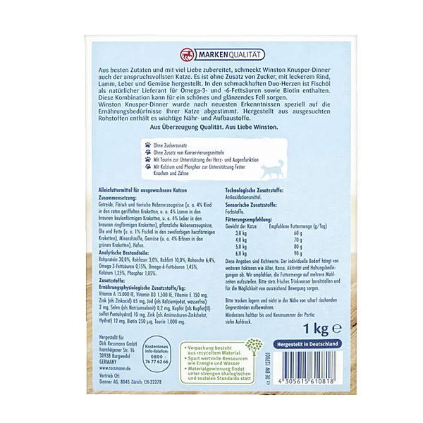 غذای خشک گربه وینستون Winston که با طعم گوشت و سبزیجات تولید شده است، فاقد شکر و مواد نگهدارنده بوده و طعم فوق العاده ای دارد.