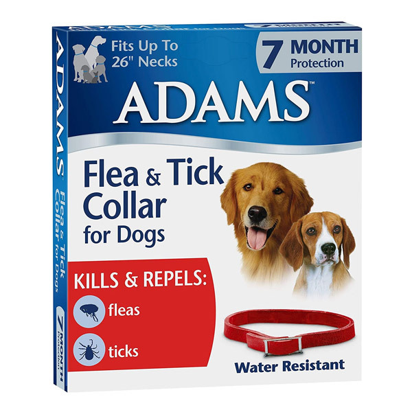 قلاده ضد کک و کنه آدامز برای سگ استفاده می شود و طول آن 65 سانتی متر است. این قلاده بر انگل های خارجی مانند شپش نیز موثر است.