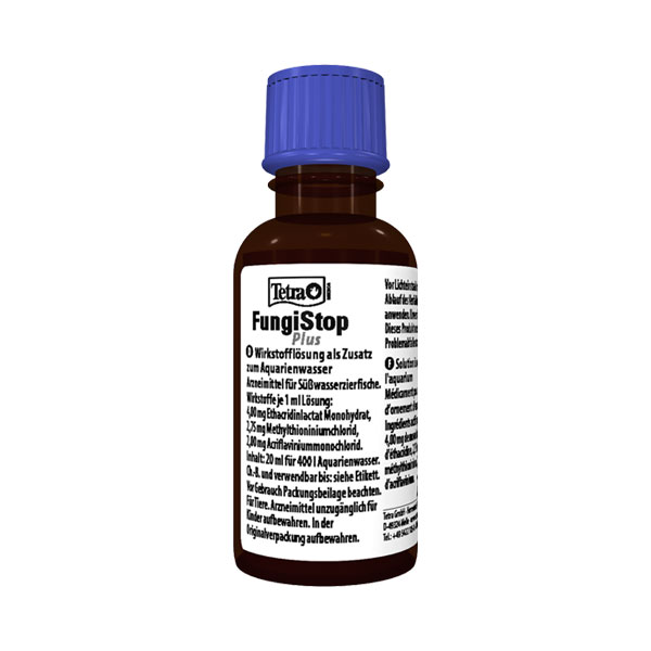 داروی ضد قارچ پلاس تترا یا Tetra Medica FungiStop Plus درمان کننده بیماری های قارچی ماهی های آب شیرین و عفونت باکتریایی خارجی است.