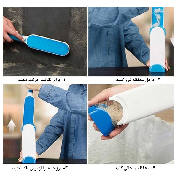 این پرزگیر بدون استفاده از چسب، موهای ریخته شده را به راحتی از سطوح مختلف جمع آوری می کند. برای تمیز کردن لباس، فرش، موکت، مبل و سایز لوازم که موهای سگ یا گربه شما در آن محل می ریزد، می توانید از این محصول استفاده کنید. این وسیله دارای غلاف تمیز کننده خودکار است و به همین دلیل کار کردن با آن فوق العاده راحت است. برس آن دو رو بوده و صفحه ای با اندازه بزرگ دارد. در تولید این محصول یک محفظه برای تخلیه مو در نظر گرفته شده است که فوق العاده کاربردی است.