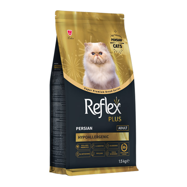 غذای پرشین ادالت برای گربه های بالغ این نژاد توسط رفلکس پلاس تولید شده است. این محصول از تشکیل گلوله مو در دستگاه گوارش پیشگیری می کند.