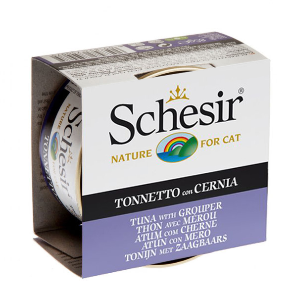 کنسرو طعم ماهی هامور و تن در ژله شسیر برای گربه های بالغ مناسب است. این محصول فاقد هرگونه مواد نگهدارنده بوده و اشتهای حیوان را به خوبی تحریک می کند.