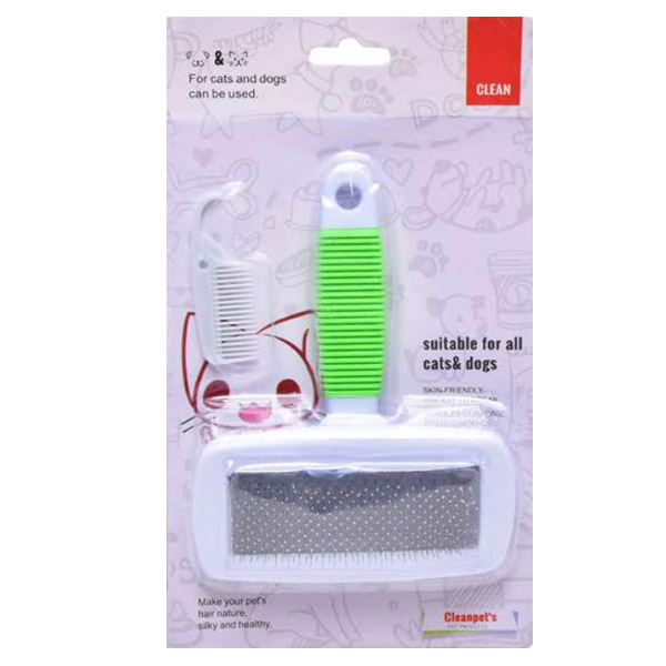 برس پلاستیکی حیوانات خانگی همراه با یک شانه کوچک در بسته بندی زیبا عرضه می شود. این محصول برای سگ، گربه و جوندگان قابل استفاده است.