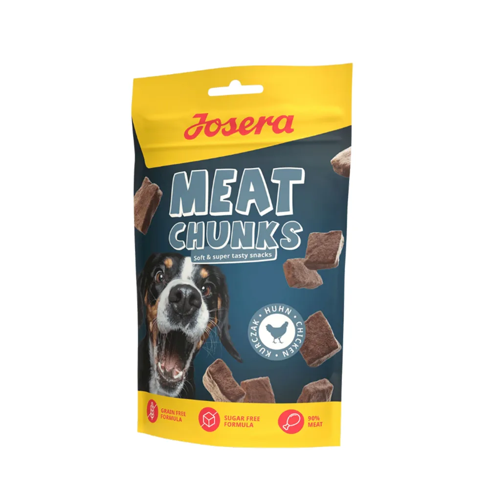 تشویقی تکه ای جوسرا با طعم مرغ برای تمامی سگ های بالغ قابل استفاده است. میزان پروتئین این محصول بالا بوده و فرمولاسیون آن فاقد شکر و گلوتن است.