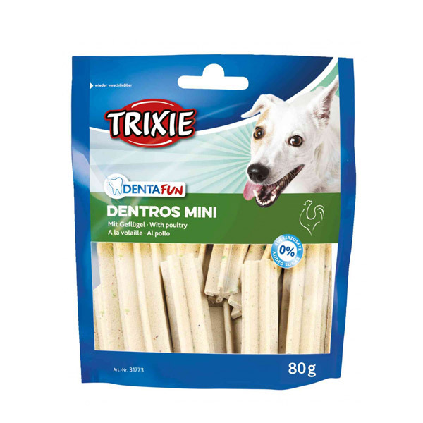 تشویقی دنتال تریکسی با طعم مرغ برای سگ های بالغ تمامی نژادها تولید شده و به حفظ سلامت دهان و دندان و پیشگیری از پلاک و تارتار کمک می کند.
