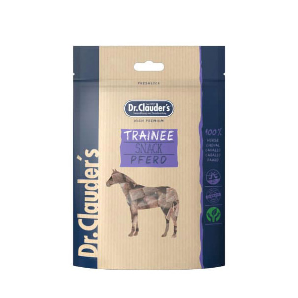 تشویقی دکتر کلادرز با طعم اسب Trainee Snack Horse یک اسنک مکعبی خوش خوراک و مغذی با بافت نرم برای تمامی نژادهای سگ و گربه است.
