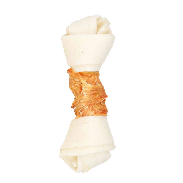 تشویقی سگ تریکسی که به شکل استخوان گره خورده تولید می شود، حاوی گوشت مرغ بوده و برای سلامت دندان ها و از بین بردن جرم ها دندانی مفید است.