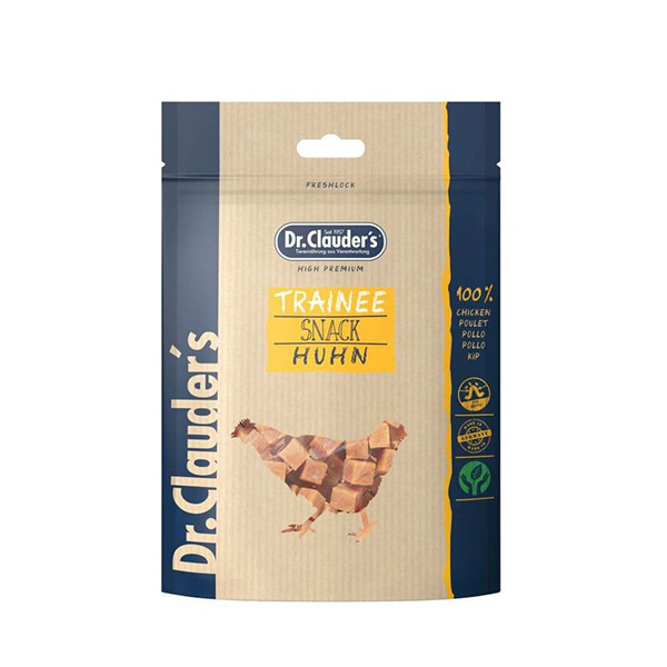 تشویقی دکتر کلادرز با طعم مرغ Trainee Snack Huhn نوعی اسنک مکعبی نرم و نیمه مرطوب است که برای همه سگ ها و گربه ها قابل استفاده می باشد.