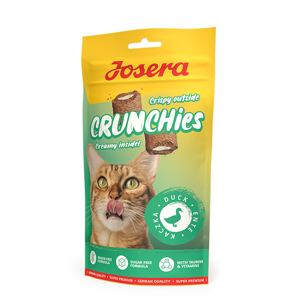 تشویقی گربه جوسرا به صورت کرانچی مغزدار با طعم اردک Crunchies Duck با فرمولاسیون فاقد غلات و کم کالری تولید شده و ارزش غذایی بالایی دارد.