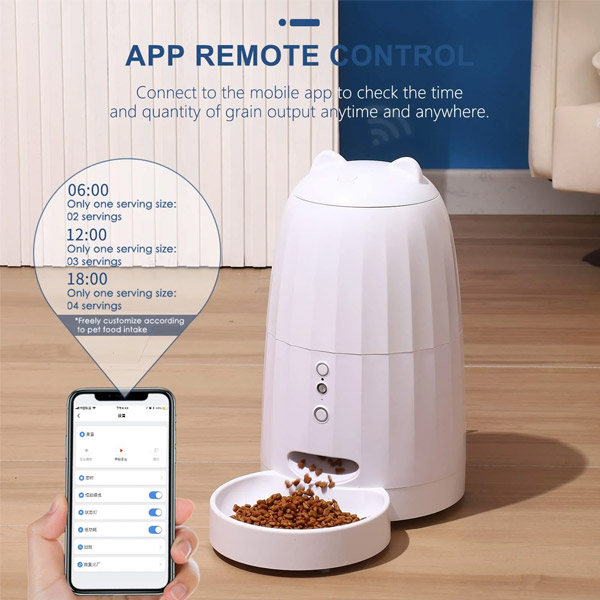 این دستگاه قابلیت پخس موزیک دارد. بدین صورت که شما می توانید یک کلیپ صوتی برای حیوان خانگی خود از قبل ضبط کنید تا حیوان موقع غذا خوردن به آن گوش کند. این محصول دارای مخزن 4 لیتری برای غذای خشک است. همچنین قابلیت شارژ USB دارد. این دستگاه دارای تایمر بوده و تا 10 وعده غذایی را می توانید توسط آن زمان بندی کنید. درب ظرف قابل قفل شدن می باشد و همچنین دارای کیسه خشک کن برای مواد غذایی بوده و از نفوذ هوا و افت کیفیت خوراک پیشگیری می کند. وزن آن 2.5 کیلوگرم بوده و طراحی فوق العاده زیبایی دارد.