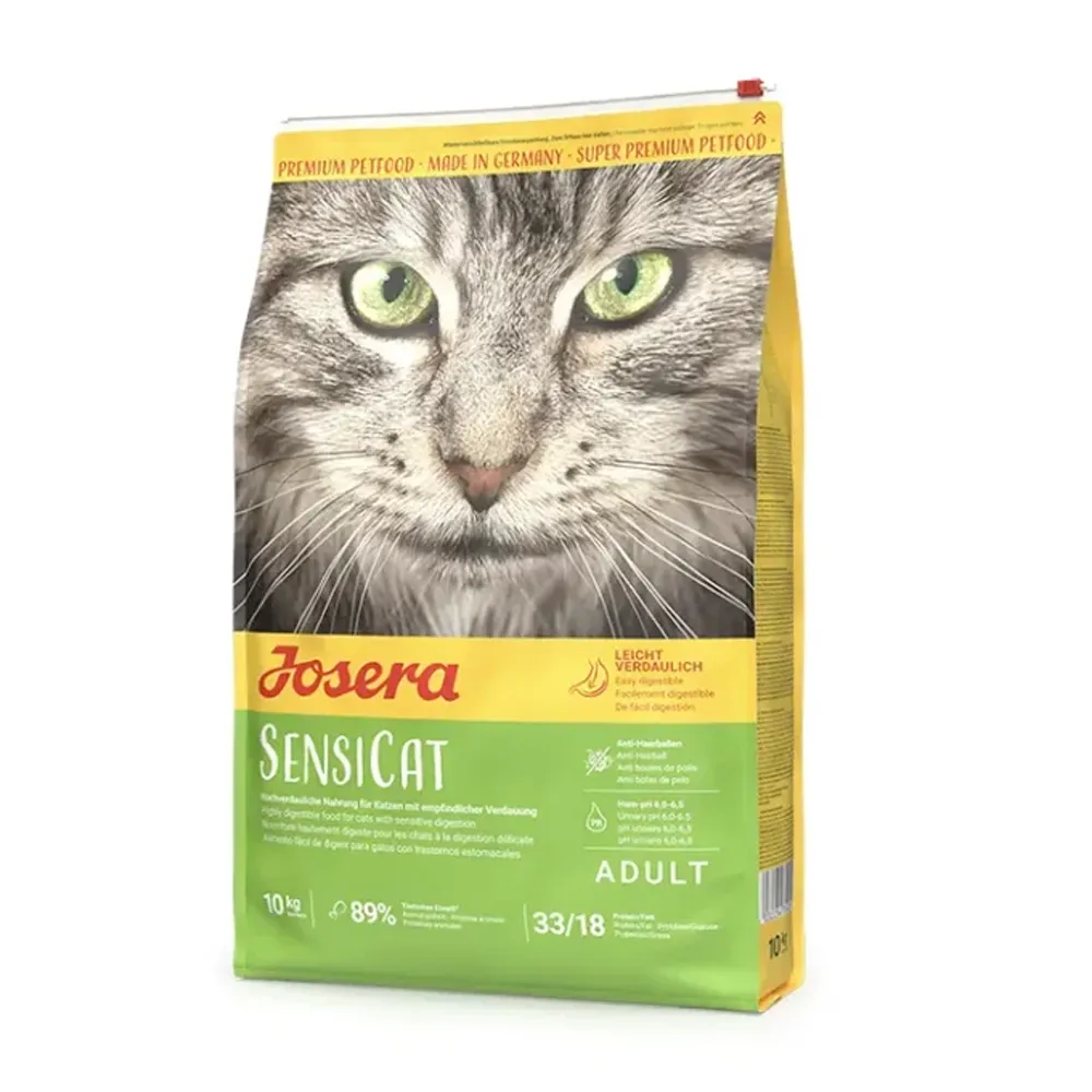 غذای جوسرا مدل سنسی کت برای گربه هایی که دارای گوارش حساس هستند، تولید شده است. این محصول حاوی ترکیبات با قابلیت هضم بالا یوده و دارای فیبر با کیفیت است.