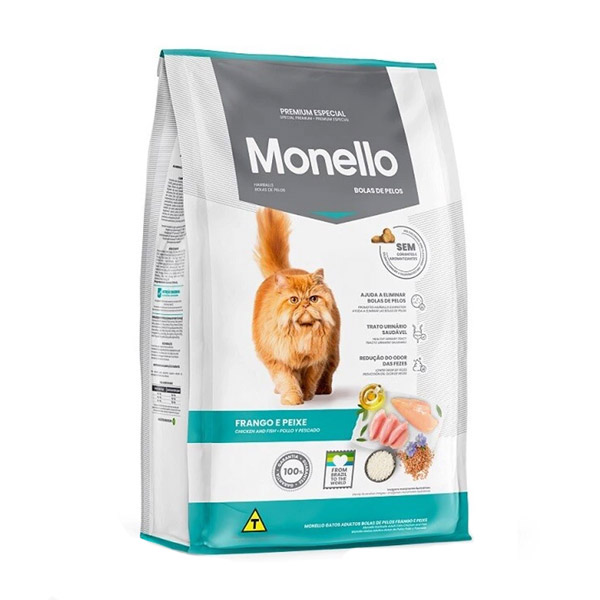 غذای مونلو مدل هیربال با طعم مرغ و ماهی برای دفع موهای بلعیده شده توسط گربه ها تولید شده است. این محصول به حفظ سلامت دستگاه ادراری نیز کمک می کند.