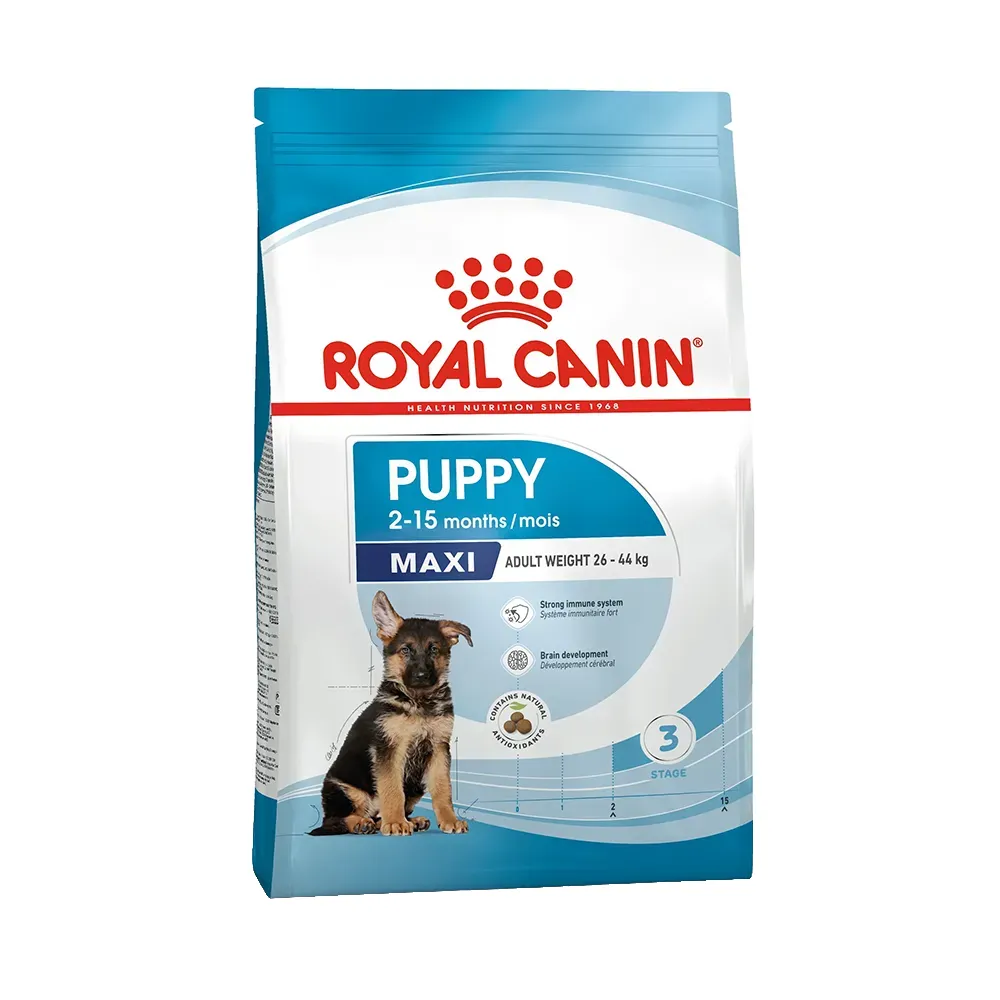 غذای مکسی پاپی یا Maxi Puppy از برند معتبر رویال کنین فرانسه ویژه توله سگ های نژاد بزرگ که وزن بالغ آنها 26 تا 44 کیلوگرم باشد تولید شده است.