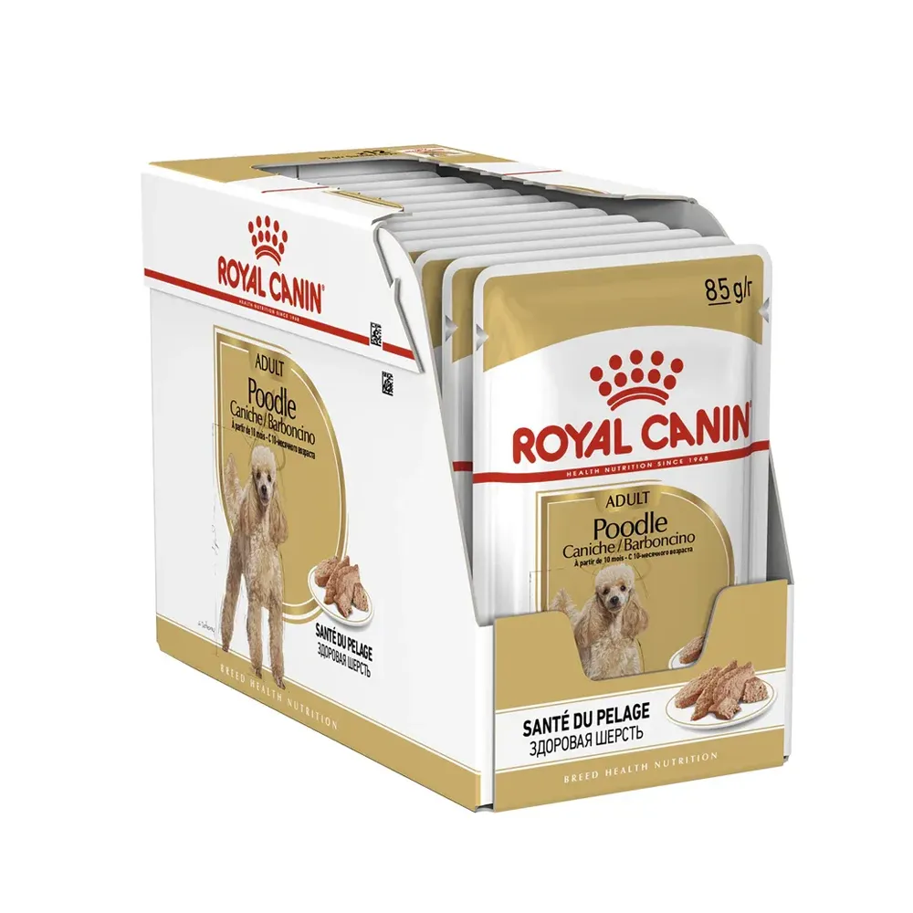 غذای پوچ پودل بالغ یا Poodle Wet رویال کنین برای سگ های این نژاد از سن 10 ماهگی قابل استفاده است. این محصول مغذی، پوست و مو را تقویت می کند.