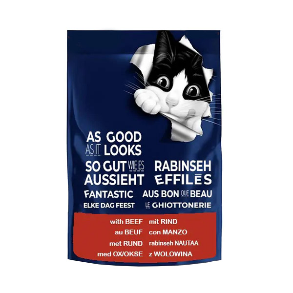 پوچ گربه فلیکس با طعم گوشت گاو برای تمامی نژادهایی که بالغ شده اند قابل استفاده بوده و به حفظ و تقویت سیستم ایمنی کمک می کند.