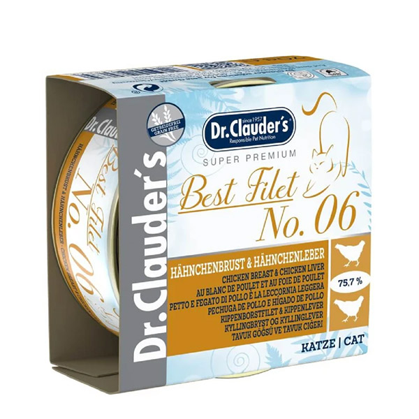 ویژگی های کنسرو گربه با طعم سینه مرغ و جگر Best Filet دکتر کلادرز No.06 :