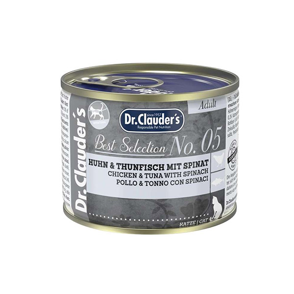 کنسرو گربه دکتر کلادرز با طعم مرغ و ماهی تن حاوی پروتئین های حیوانی و اسفناج است که برای تقویت سیستم ایمنی بسیار مفید هستند.