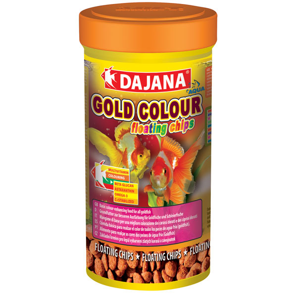 گلد کالر فلوتینگ چیپ نوعی غذای گرانولی بوده که مناسب آکواریوم های آب شیرین و برکه ای می باشد. Gold Colour Floating Chips یکی از محصولات شرکت داجانا است.